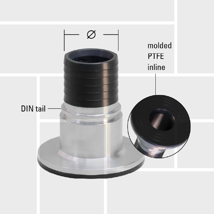 PTFE (or PFA) inlined flared face is now available on flared stub end for connection with loose flanges. The design is widely used in high-purity systems, chemical processing, and instrumentation.